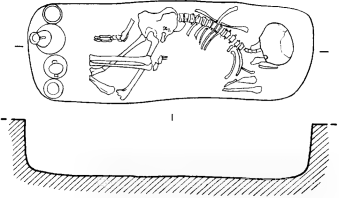 长方形竖穴土坑墓。墓向 355°。墓圹长 1.9、宽 0.87、深 0.45 米。无葬具。